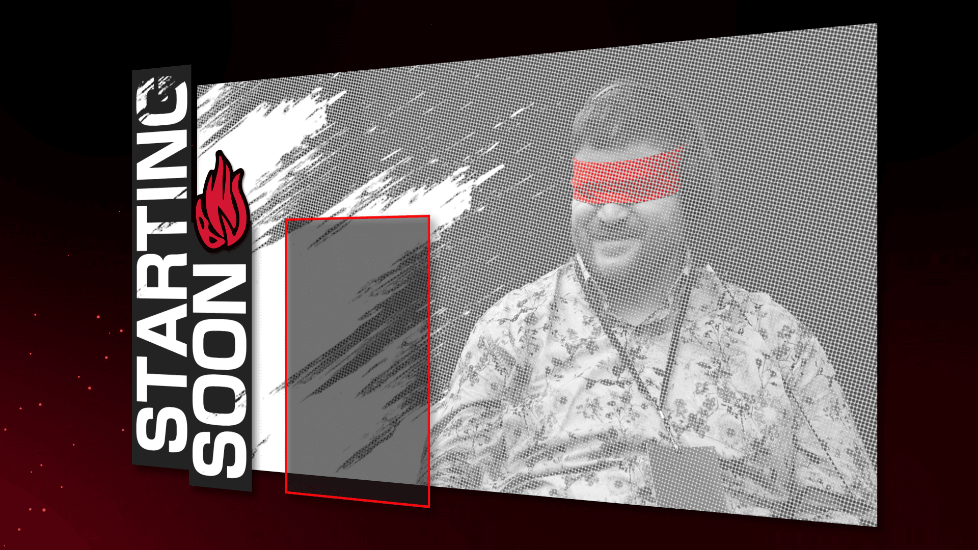 The striking visual of Sven playing blindfolded is paramount to his brand identity, so the iconic red bandanna is highlighted in his Starting, BRB and End scenes. Contrasting the otherwise black and white photography, the eye to Sven’s face, and establishes an emotional connection.