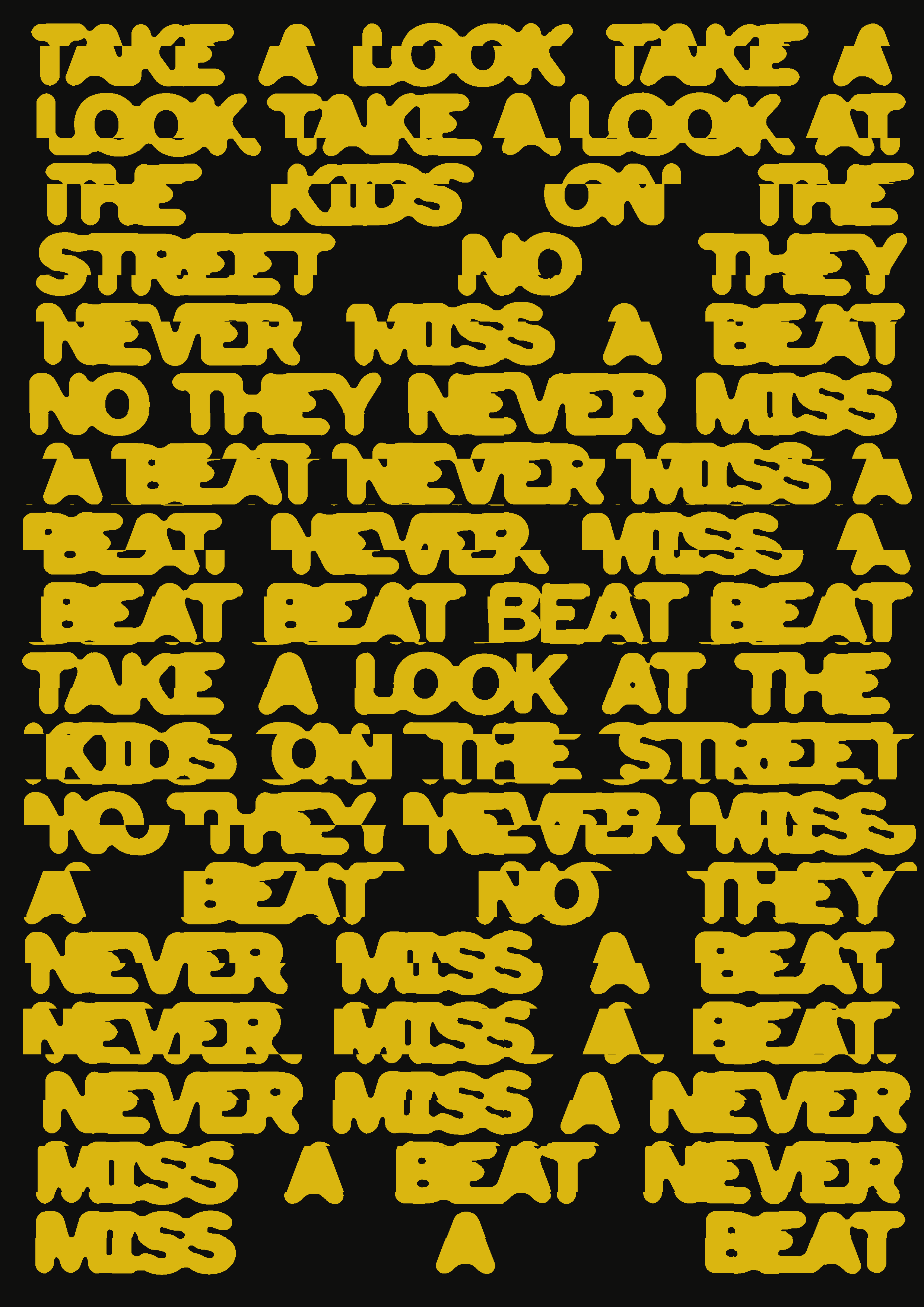 Earworms is an excuse to play around with Affinity 3, the most promising alternative to Adobe's monopoly. Using songs that have been stuck in my head for weeks, I set out to create posters and stickers using the lyrics.